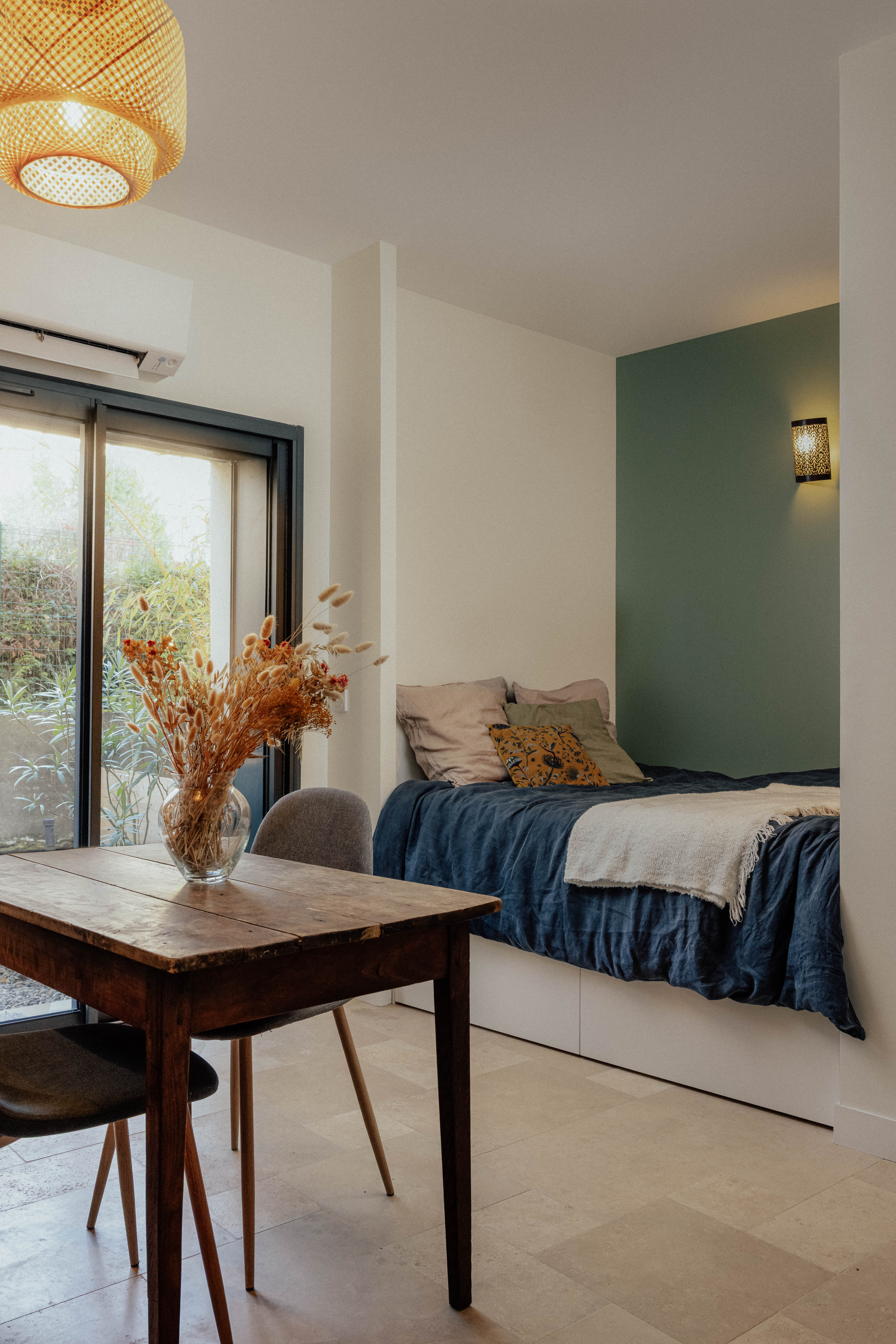 Création d’un studio en rez-de-chaussée, création d’ouverture sur la terrasse privée.